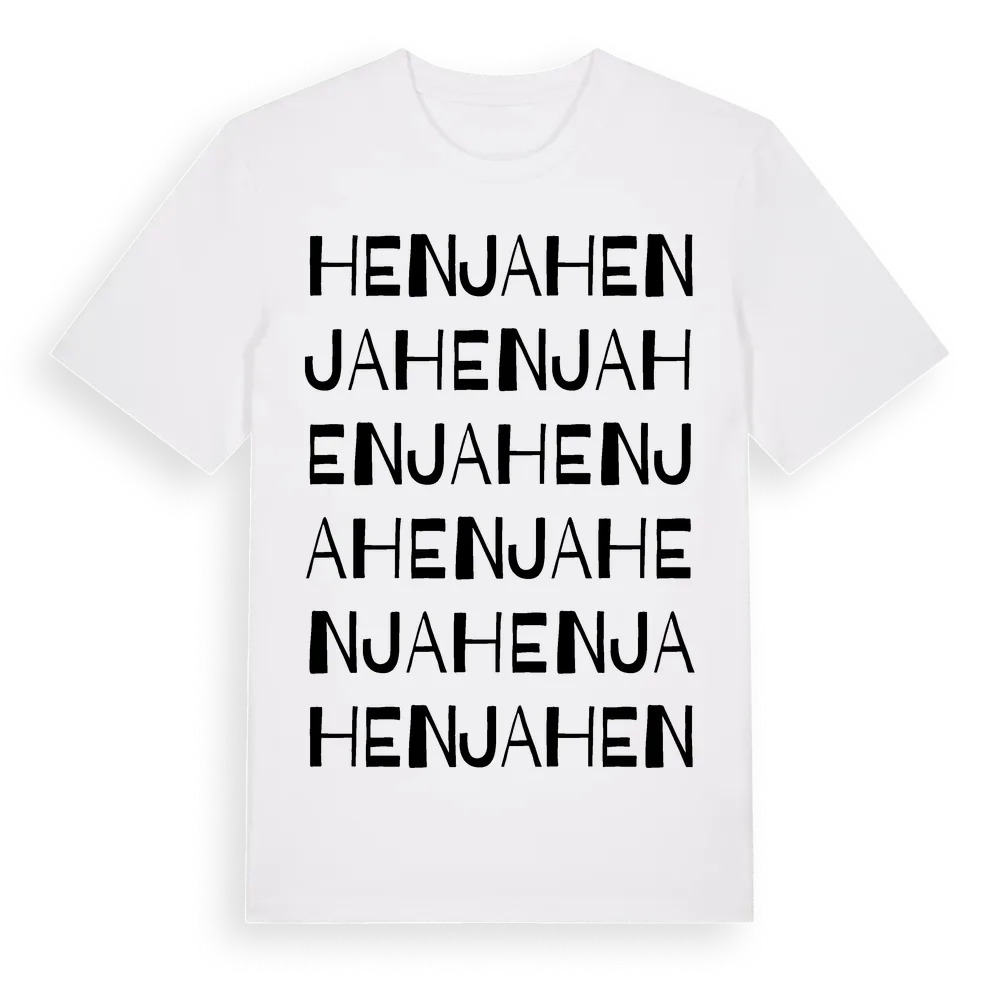 Henja ordlek t-shirt är inspirerad av byn Henja i Jönköpings län, Sverige. Tröjan är designad för dig som har en speciell koppling till platsen – oavsett om du bor här, har rötterna här eller bara älskar Henja.