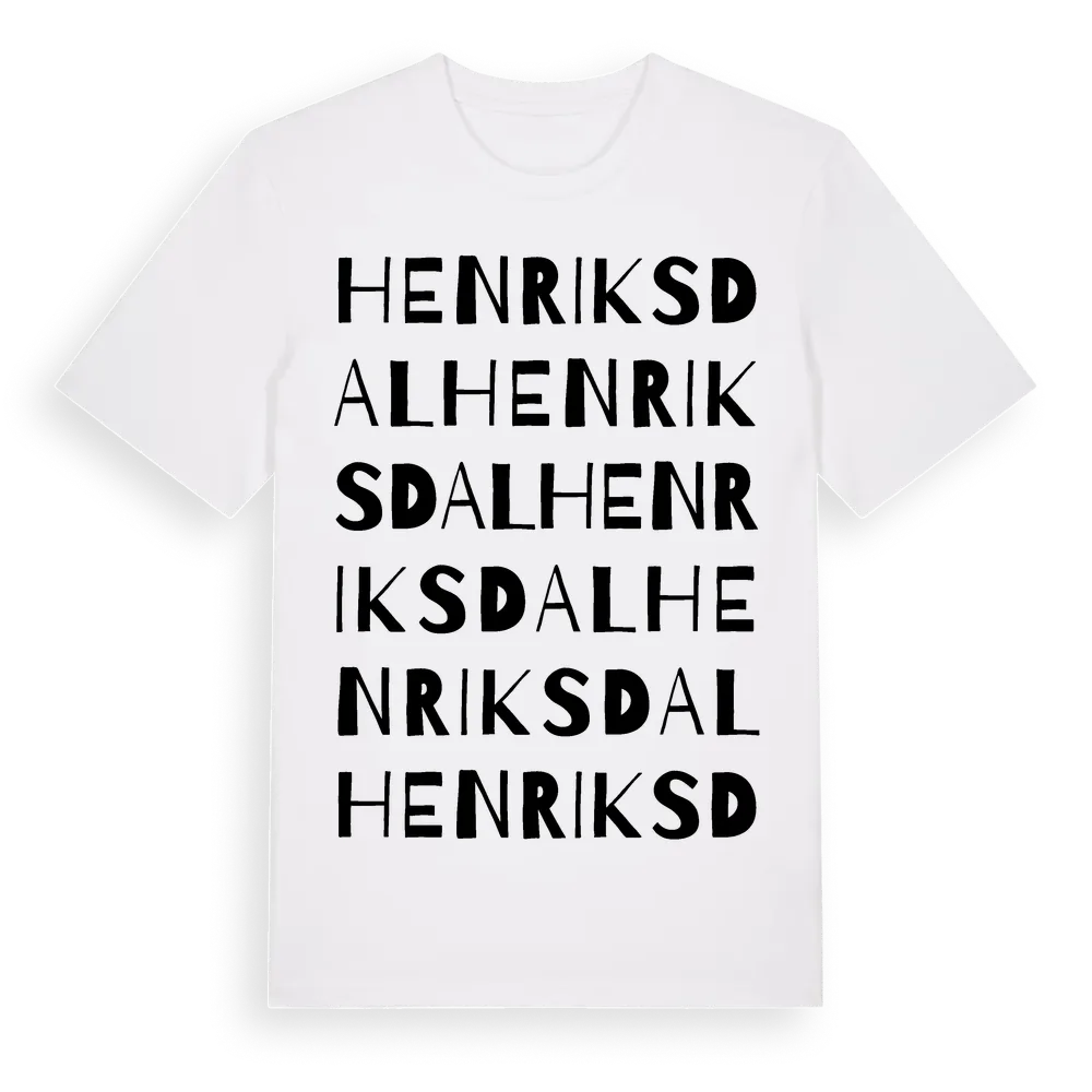 Henriksdal ordlek t-shirt är inspirerad av Henriksdal i Jönköpings län, Sverige. Tröjan är designad för dig som har en speciell koppling till platsen – oavsett om du bor här, har rötterna här eller bara älskar Henriksdal.