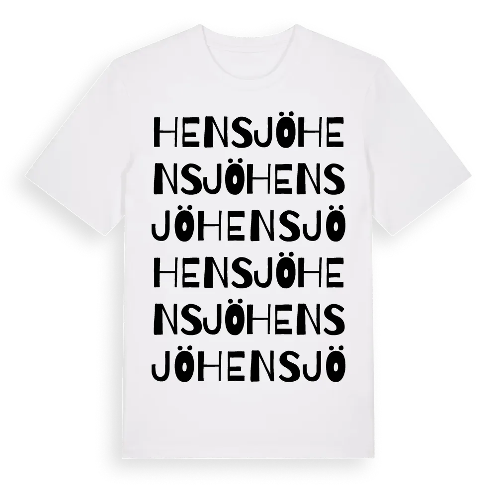 Hensjö ordlek t-shirt är inspirerad av Hensjö i Jönköpings län, Sverige. Tröjan är designad för dig som har en speciell koppling till platsen – oavsett om du bor här, har rötterna här eller bara älskar Hensjö.