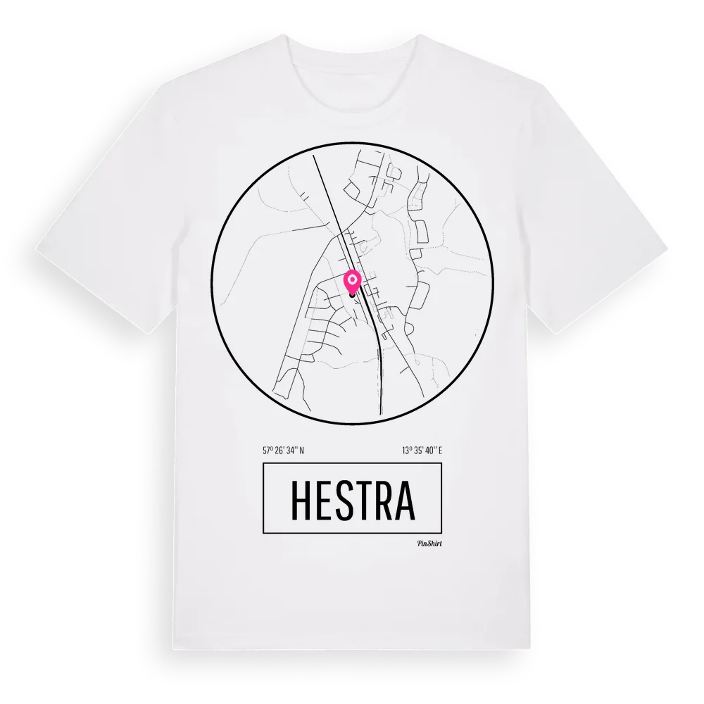 Ett rent, runt tryck med Hestras namn. Minimalistiskt och stilrent – perfekt för den som känner platsen utan att skrika det. Premium bomull, unisex – från byn Hestra i Jönköpings län.