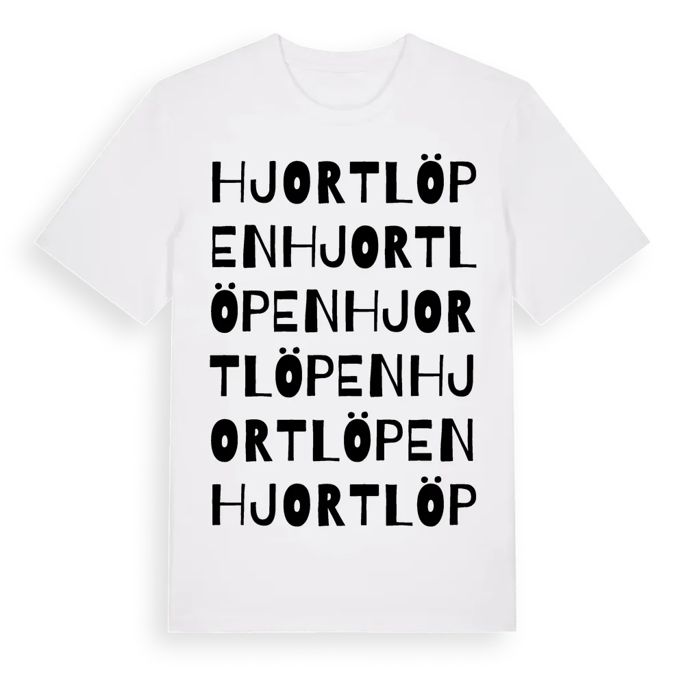 Hjortlöpen ordlek t-shirt är inspirerad av Hjortlöpen i Jönköpings län, Sverige. Tröjan är designad för dig som har en speciell koppling till platsen – oavsett om du bor här, har rötterna här eller bara älskar Hjortlöpen.