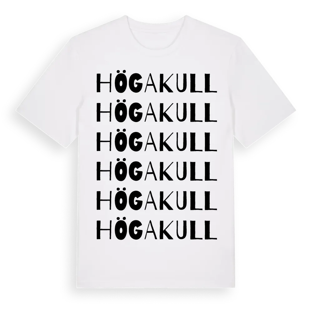 Högakull ordlek t-shirt är inspirerad av byn Högakull i Jönköpings län, Sverige. Tröjan är designad för dig som har en speciell koppling till platsen – oavsett om du bor här, har rötterna här eller bara älskar Högakull.