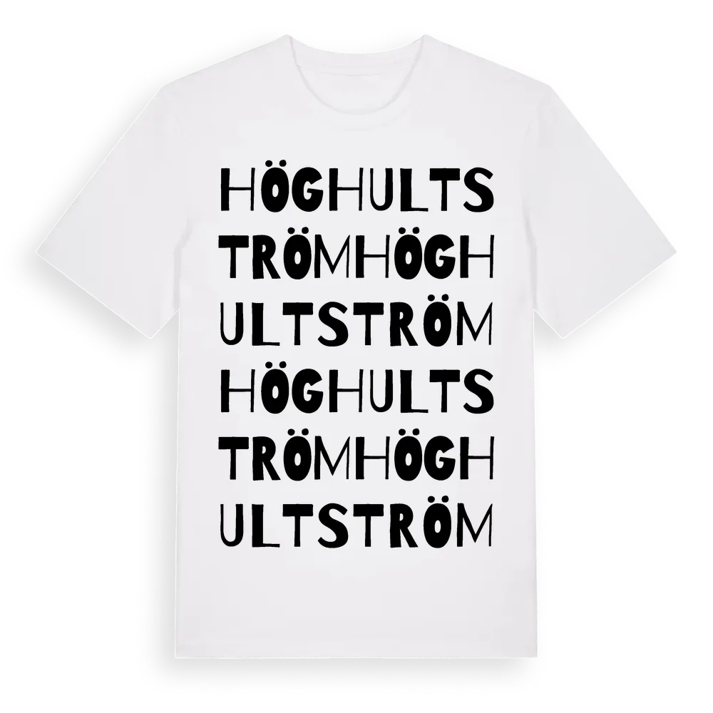 Höghultström ordlek t-shirt är inspirerad av Höghultström i Jönköpings län, Sverige. Tröjan är designad för dig som har en speciell koppling till platsen – oavsett om du bor här, har rötterna här eller bara älskar Höghultström.