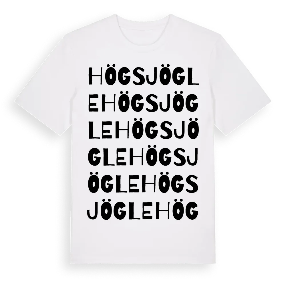 Högsjögle ordlek t-shirt är inspirerad av Högsjögle i Jönköpings län, Sverige. Tröjan är designad för dig som har en speciell koppling till platsen – oavsett om du bor här, har rötterna här eller bara älskar Högsjögle.