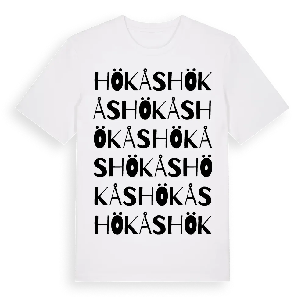 Hökås ordlek t-shirt är inspirerad av Hökås i Jönköpings län, Sverige. Tröjan är designad för dig som har en speciell koppling till platsen – oavsett om du bor här, har rötterna här eller bara älskar Hökås.