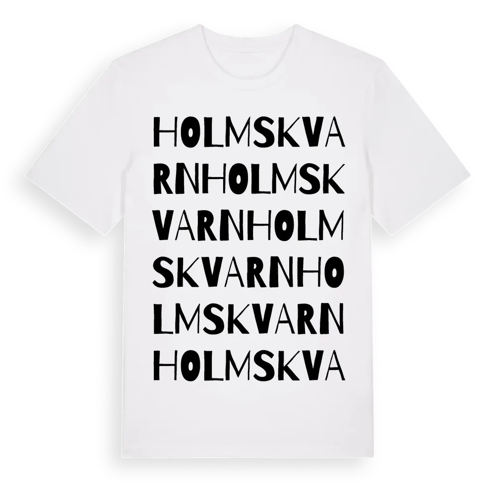 Holmskvarn ordlek t-shirt är inspirerad av Holmskvarn i Jönköpings län, Sverige. Tröjan är designad för dig som har en speciell koppling till platsen – oavsett om du bor här, har rötterna här eller bara älskar Holmskvarn.