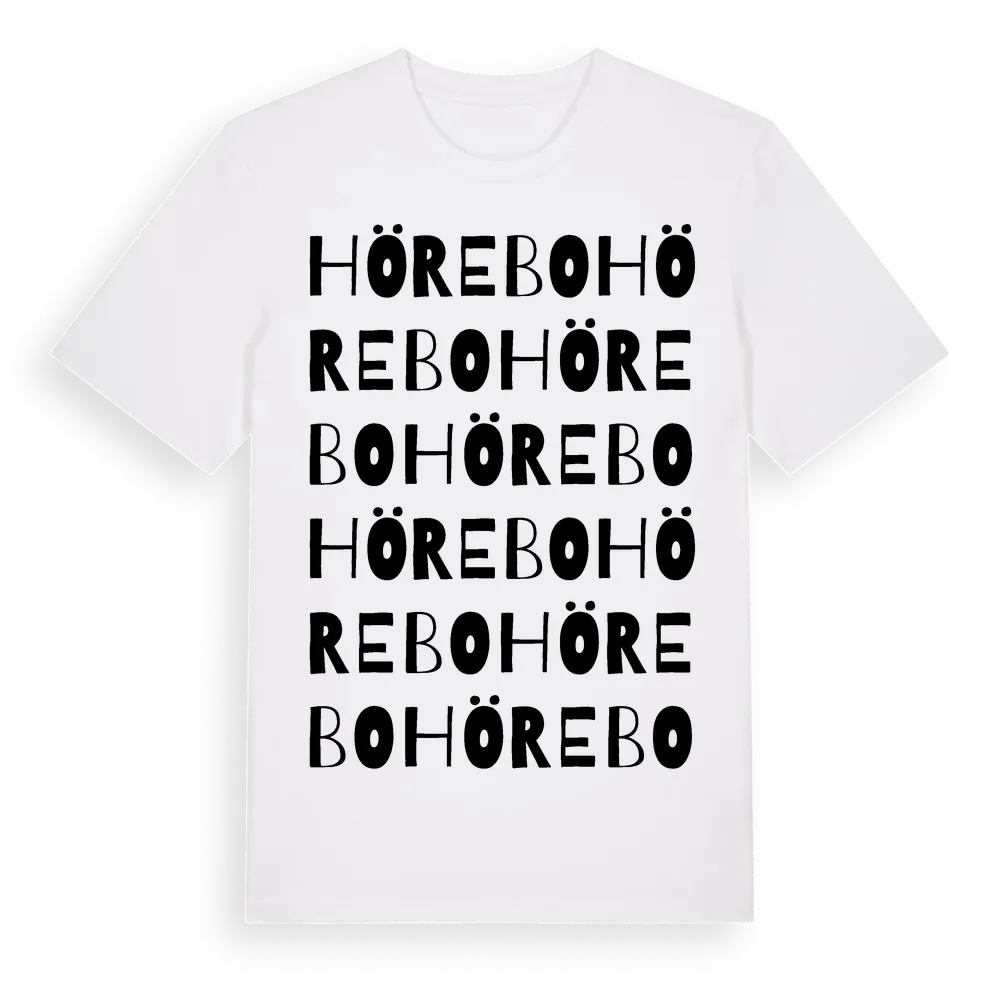 En ordlek byggd på Hörebos namn. Subtilt och klurig – ett motiv som bara de som verkligen känner platsen fullt ut förstår. Premium bomull, unisex – från Hörebo i Jönköpings län.