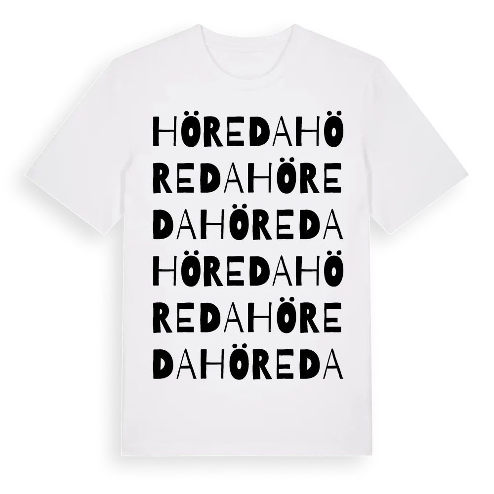 En ordlek byggd på Höredas namn. Subtilt och klurig – ett motiv som bara de som verkligen känner platsen fullt ut förstår. Premium bomull, unisex – från byn Höreda i Jönköpings län.