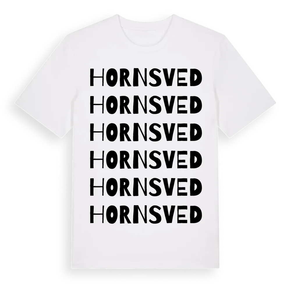 Hornsved ordlek t-shirt är inspirerad av byn Hornsved i Jönköpings län, Sverige. Tröjan är designad för dig som har en speciell koppling till platsen – oavsett om du bor här, har rötterna här eller bara älskar Hornsved.