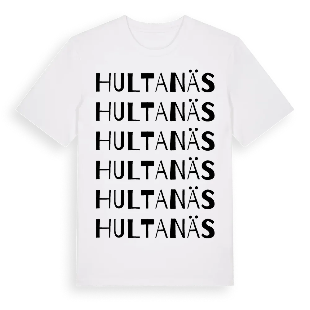 Hultanäs ordlek t-shirt är inspirerad av byn Hultanäs i Jönköpings län, Sverige. Tröjan är designad för dig som har en speciell koppling till platsen – oavsett om du bor här, har rötterna här eller bara älskar Hultanäs.