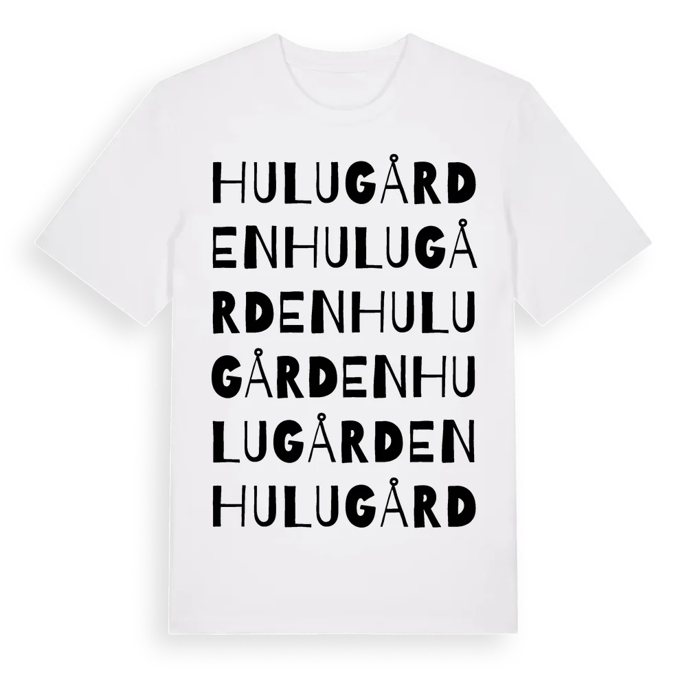 Hulugården ordlek t-shirt är inspirerad av Hulugården i Jönköpings län, Sverige. Tröjan är designad för dig som har en speciell koppling till platsen – oavsett om du bor här, har rötterna här eller bara älskar Hulugården.