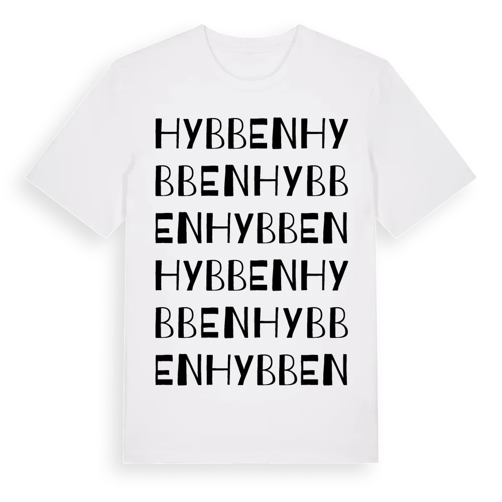 Hybben ordlek t-shirt är inspirerad av Hybben i Jönköpings län, Sverige. Tröjan är designad för dig som har en speciell koppling till platsen – oavsett om du bor här, har rötterna här eller bara älskar Hybben.