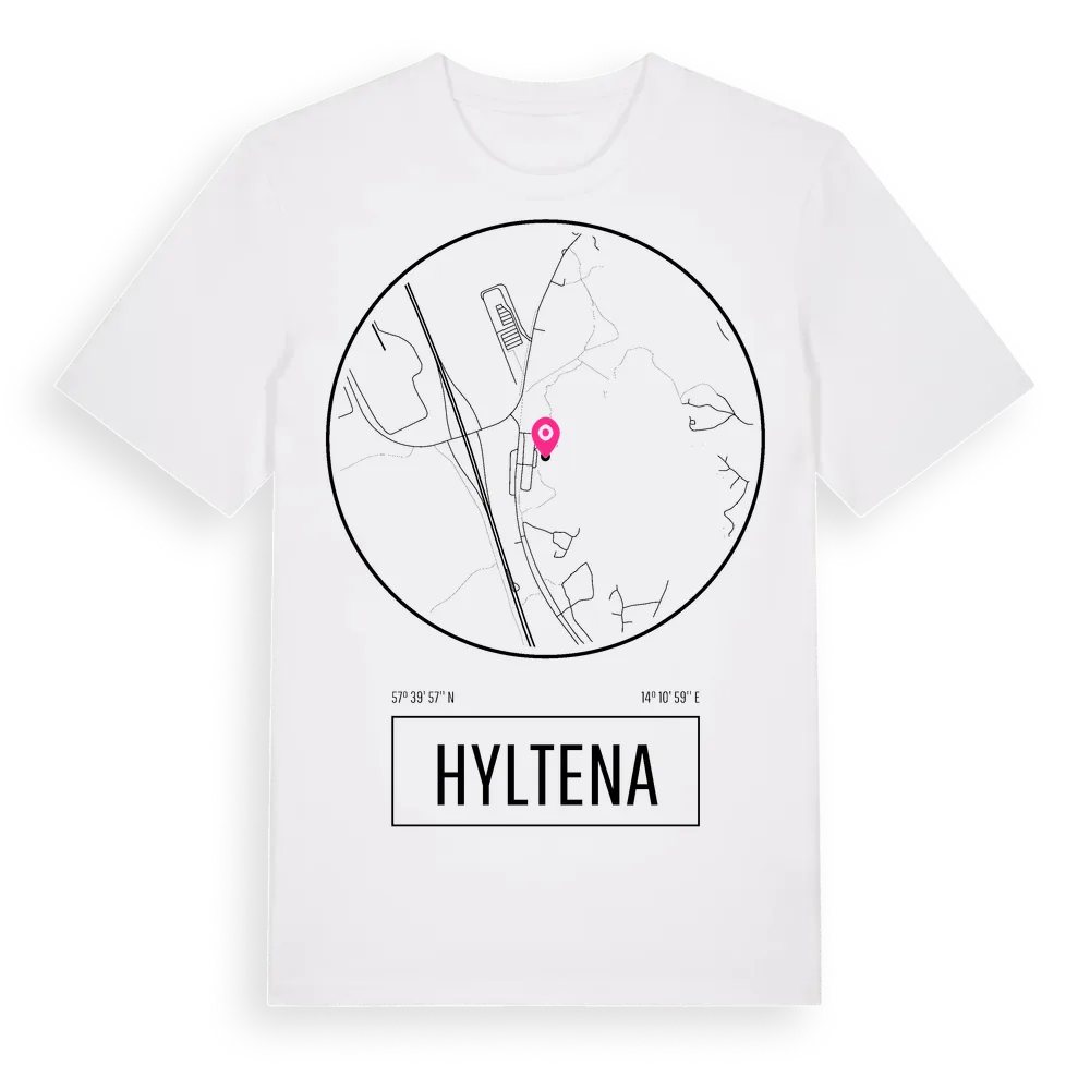 Ett rent, runt tryck med Hyltenas namn. Minimalistiskt och stilrent – perfekt för den som känner platsen utan att skrika det. Premium bomull, unisex – från stadsdelen Hyltena i Jönköpings län.