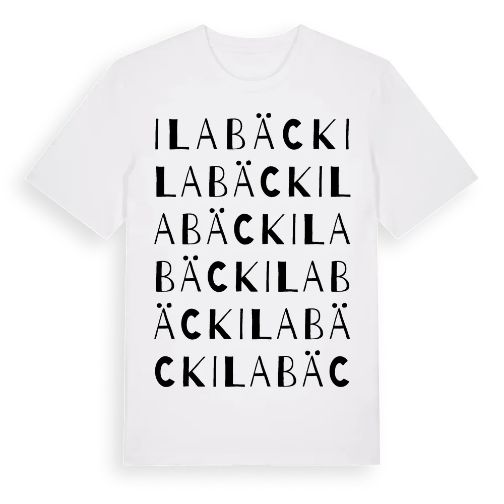 Ilabäck ordlek t-shirt är inspirerad av Ilabäck i Jönköpings län, Sverige. Tröjan är designad för dig som har en speciell koppling till platsen – oavsett om du bor här, har rötterna här eller bara älskar Ilabäck.