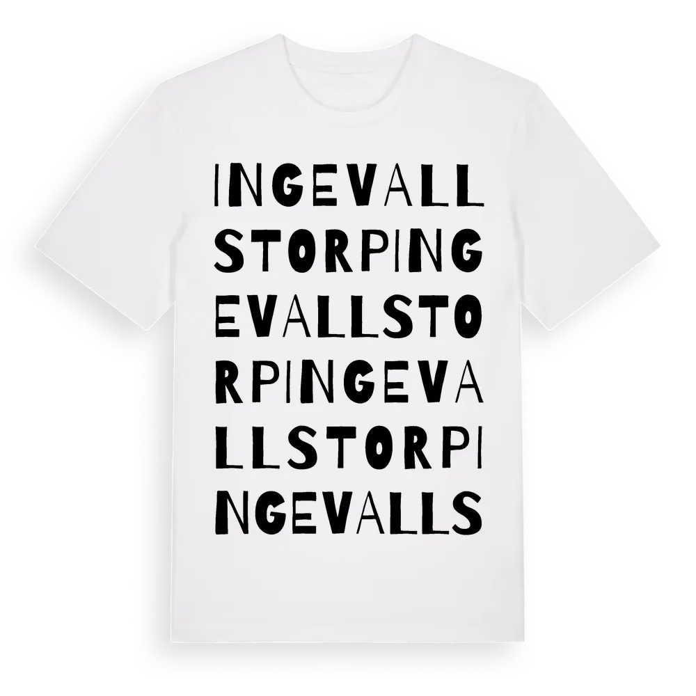 Ingevallstorp ordlek t-shirt är inspirerad av byn Ingevallstorp i Jönköpings län, Sverige. Tröjan är designad för dig som har en speciell koppling till platsen – oavsett om du bor här, har rötterna här eller bara älskar Ingevallstorp.