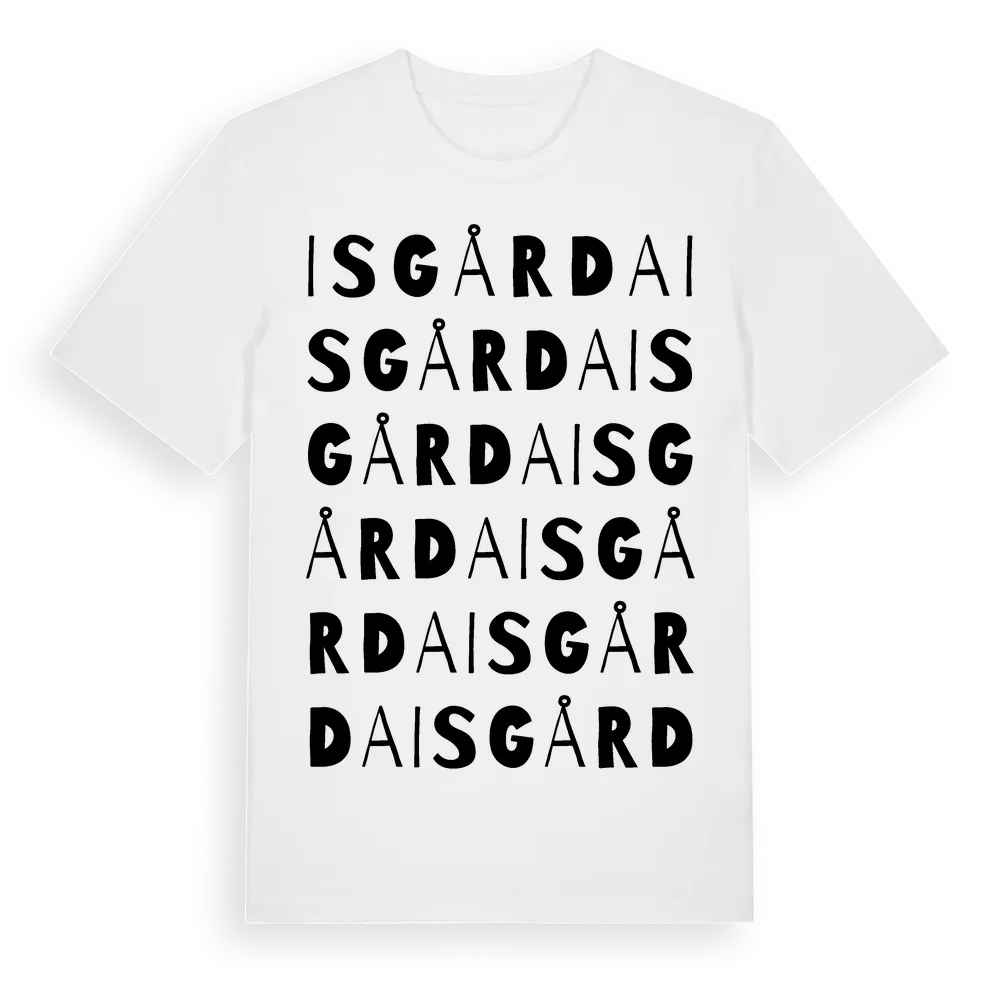 Isgårda ordlek t-shirt är inspirerad av byn Isgårda i Jönköpings län, Sverige. Tröjan är designad för dig som har en speciell koppling till platsen – oavsett om du bor här, har rötterna här eller bara älskar Isgårda.
