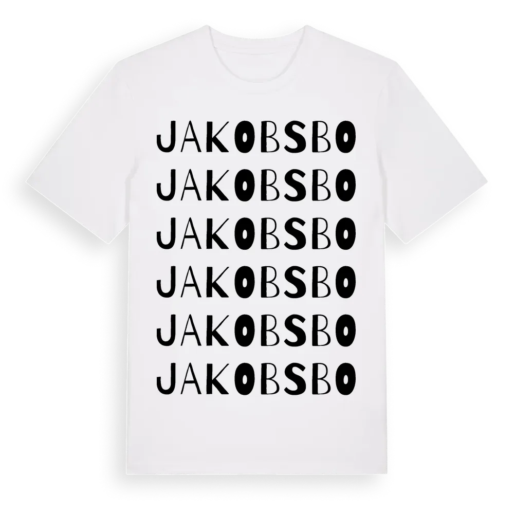 Jakobsbo ordlek t-shirt är inspirerad av Jakobsbo i Jönköpings län, Sverige. Tröjan är designad för dig som har en speciell koppling till platsen – oavsett om du bor här, har rötterna här eller bara älskar Jakobsbo.