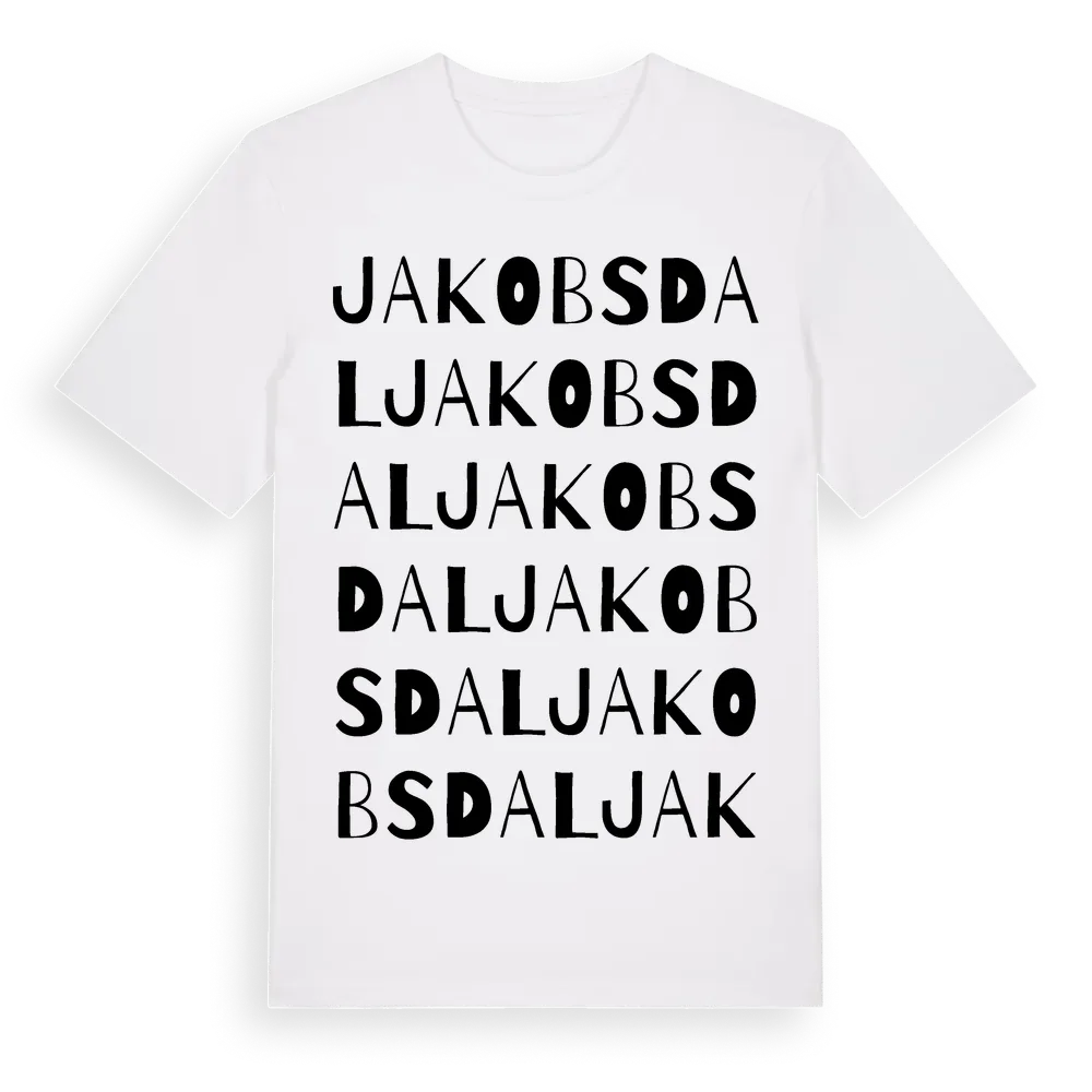 Jakobsdal ordlek t-shirt är inspirerad av Jakobsdal i Jönköpings län, Sverige. Tröjan är designad för dig som har en speciell koppling till platsen – oavsett om du bor här, har rötterna här eller bara älskar Jakobsdal.