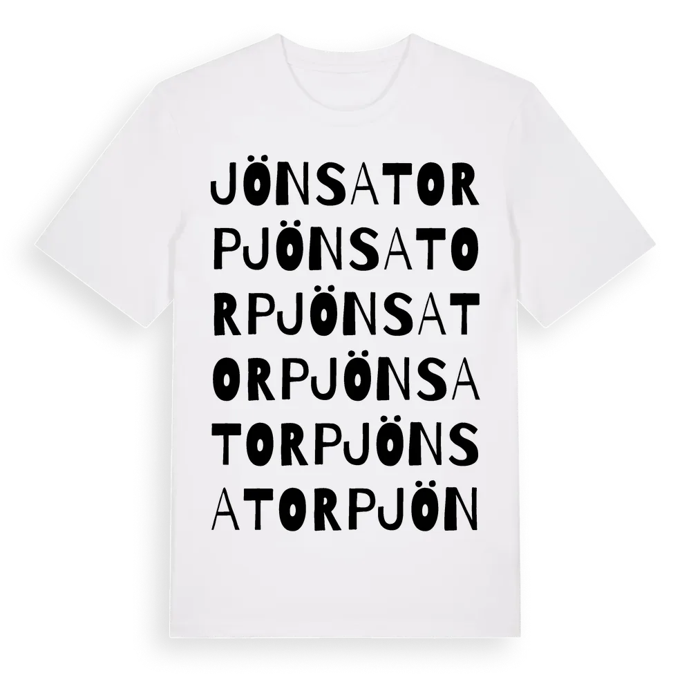 Jönsatorp ordlek t-shirt är inspirerad av Jönsatorp i Jönköpings län, Sverige. Tröjan är designad för dig som har en speciell koppling till platsen – oavsett om du bor här, har rötterna här eller bara älskar Jönsatorp.