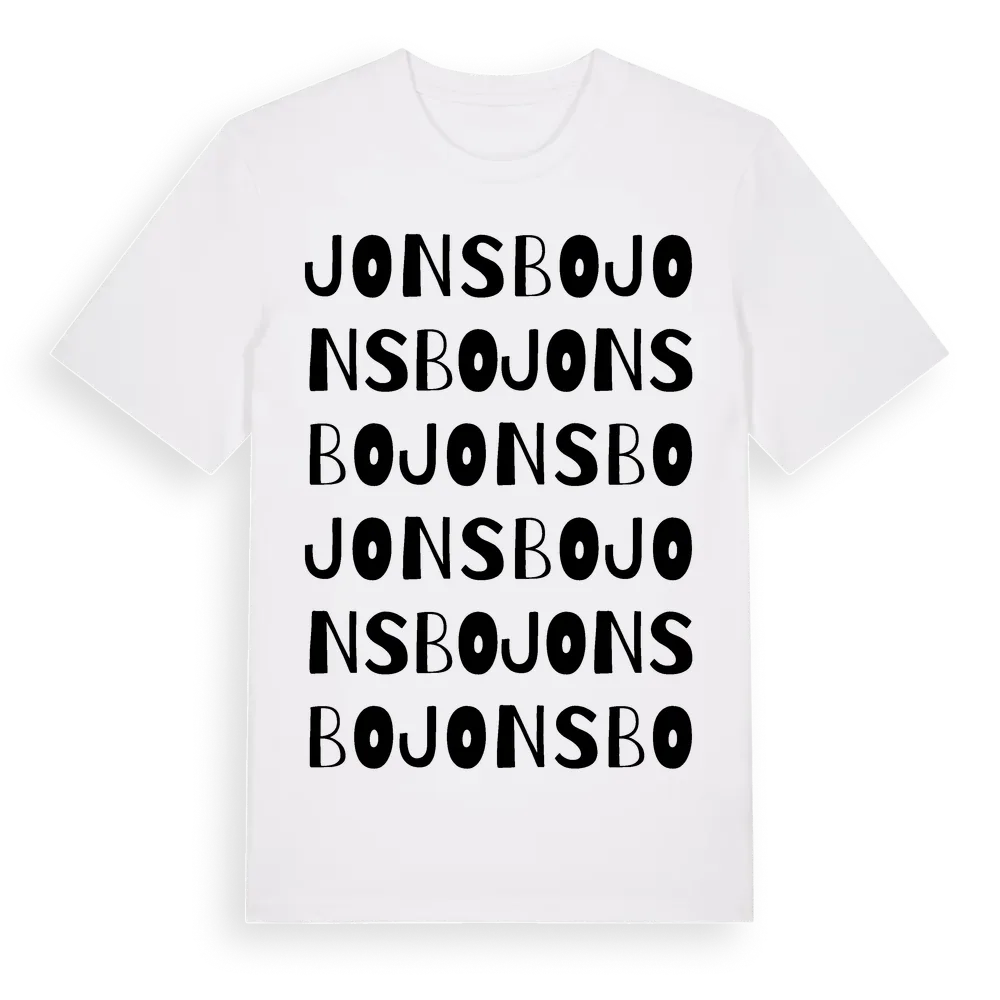 Jonsbo ordlek t-shirt är inspirerad av Jonsbo i Jönköpings län, Sverige. Tröjan är designad för dig som har en speciell koppling till platsen – oavsett om du bor här, har rötterna här eller bara älskar Jonsbo.