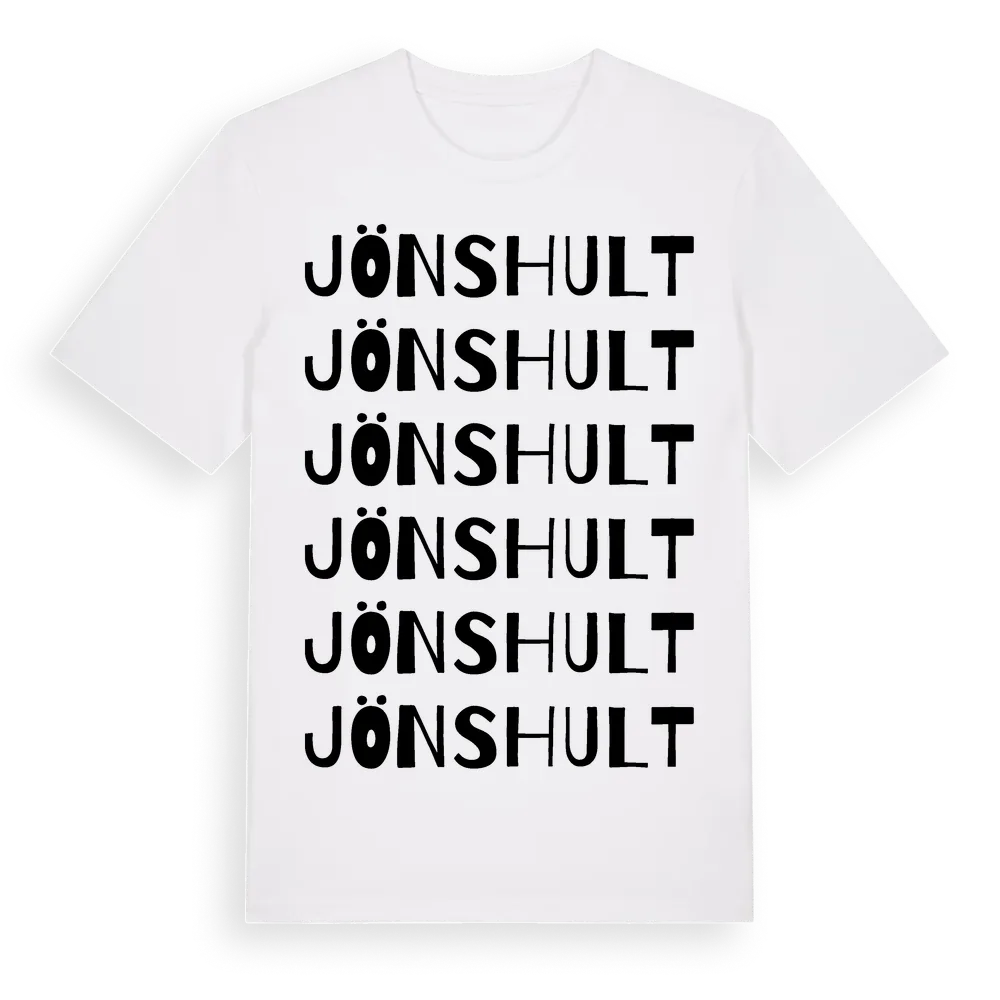 Jönshult ordlek t-shirt är inspirerad av byn Jönshult i Jönköpings län, Sverige. Tröjan är designad för dig som har en speciell koppling till platsen – oavsett om du bor här, har rötterna här eller bara älskar Jönshult.