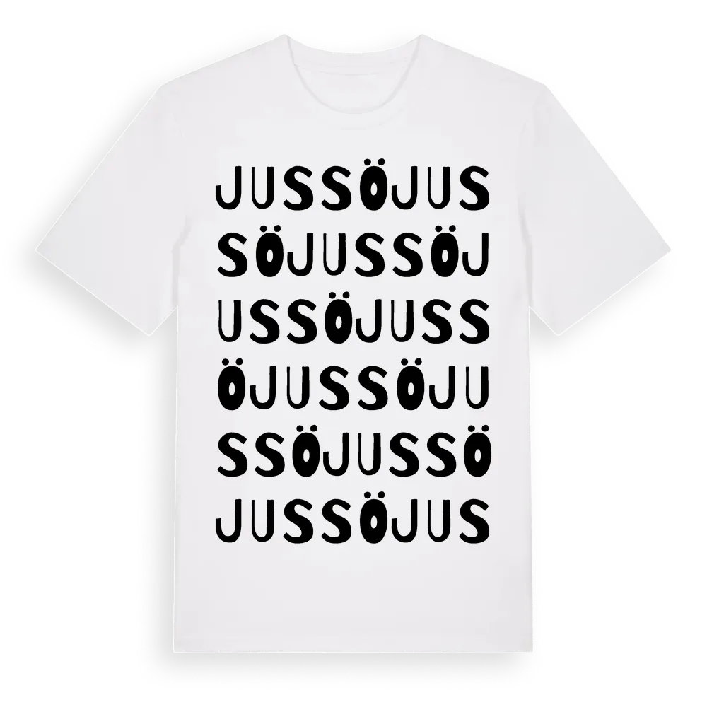 Jussö ordlek t-shirt är inspirerad av Jussö i Jönköpings län, Sverige. Tröjan är designad för dig som har en speciell koppling till platsen – oavsett om du bor här, har rötterna här eller bara älskar Jussö.