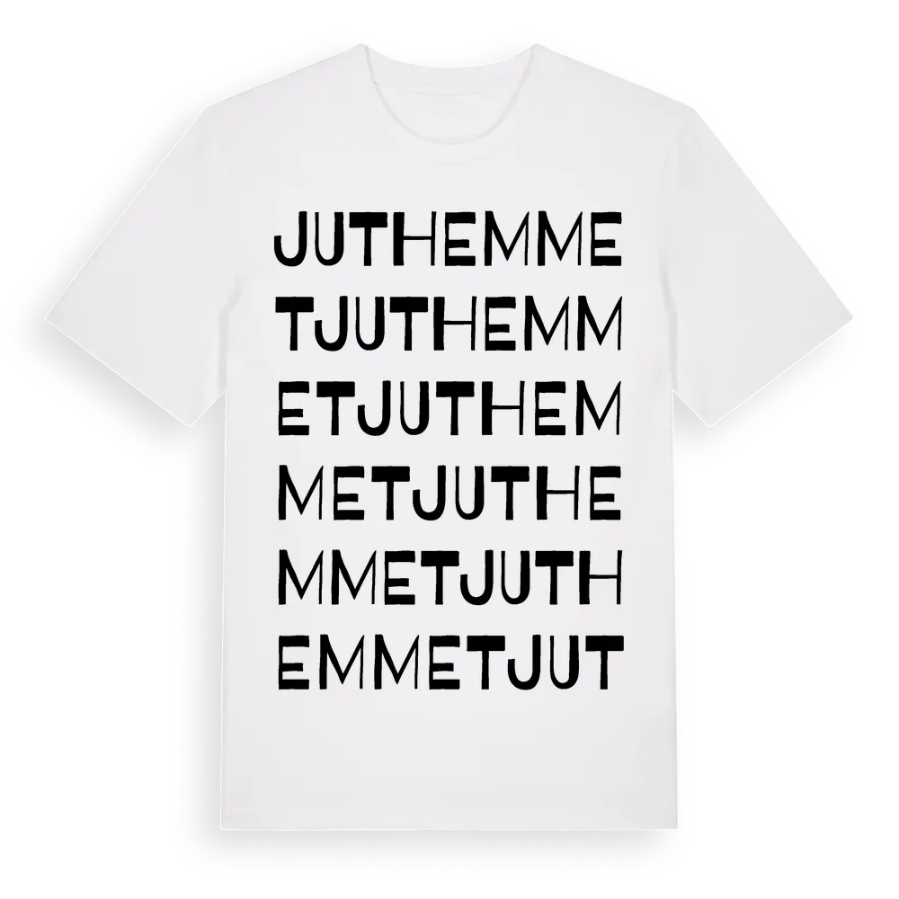 Juthemmet ordlek t-shirt är inspirerad av Juthemmet i Jönköpings län, Sverige. Tröjan är designad för dig som har en speciell koppling till platsen – oavsett om du bor här, har rötterna här eller bara älskar Juthemmet.