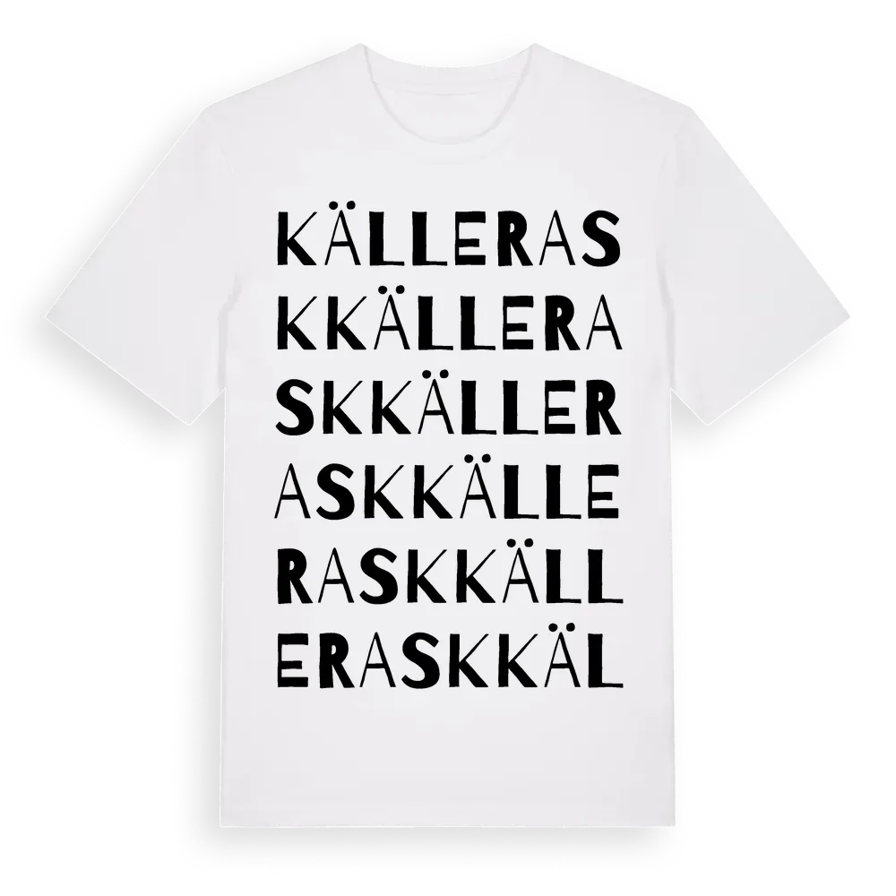 Källerask ordlek t-shirt är inspirerad av Källerask i Jönköpings län, Sverige. Tröjan är designad för dig som har en speciell koppling till platsen – oavsett om du bor här, har rötterna här eller bara älskar Källerask.