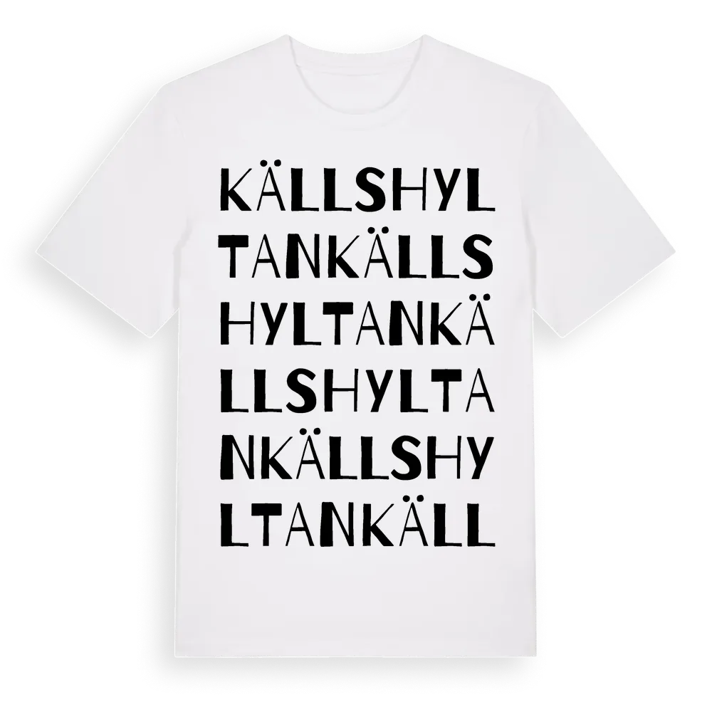 Källshyltan ordlek t-shirt är inspirerad av Källshyltan i Jönköpings län, Sverige. Tröjan är designad för dig som har en speciell koppling till platsen – oavsett om du bor här, har rötterna här eller bara älskar Källshyltan.