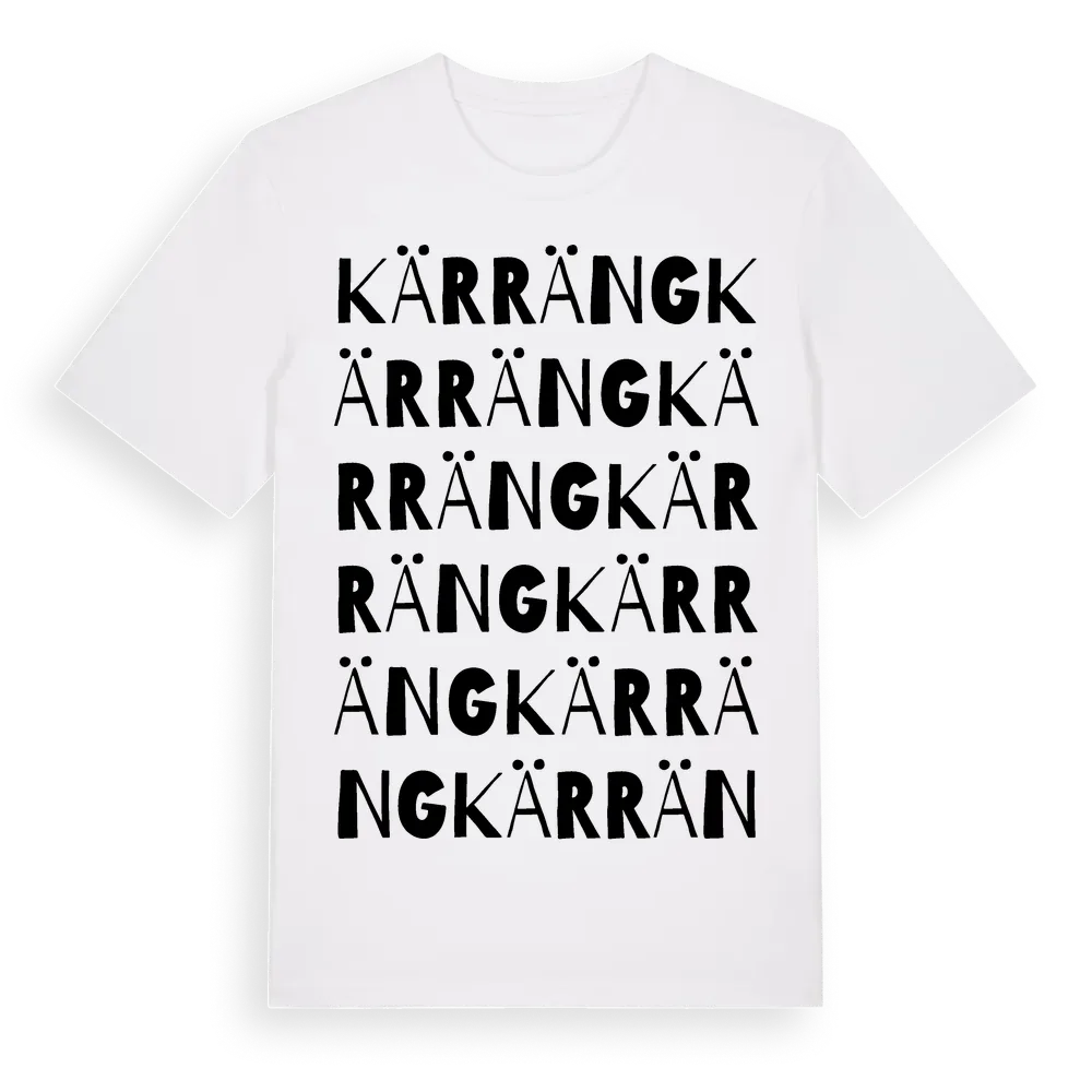 Kärräng ordlek t-shirt är inspirerad av Kärräng i Jönköpings län, Sverige. Tröjan är designad för dig som har en speciell koppling till platsen – oavsett om du bor här, har rötterna här eller bara älskar Kärräng.