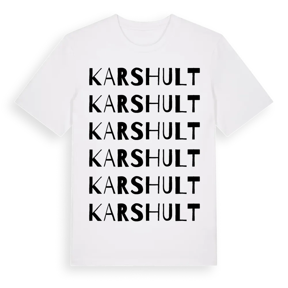 Karshult ordlek t-shirt är inspirerad av byn Karshult i Jönköpings län, Sverige. Tröjan är designad för dig som har en speciell koppling till platsen – oavsett om du bor här, har rötterna här eller bara älskar Karshult.