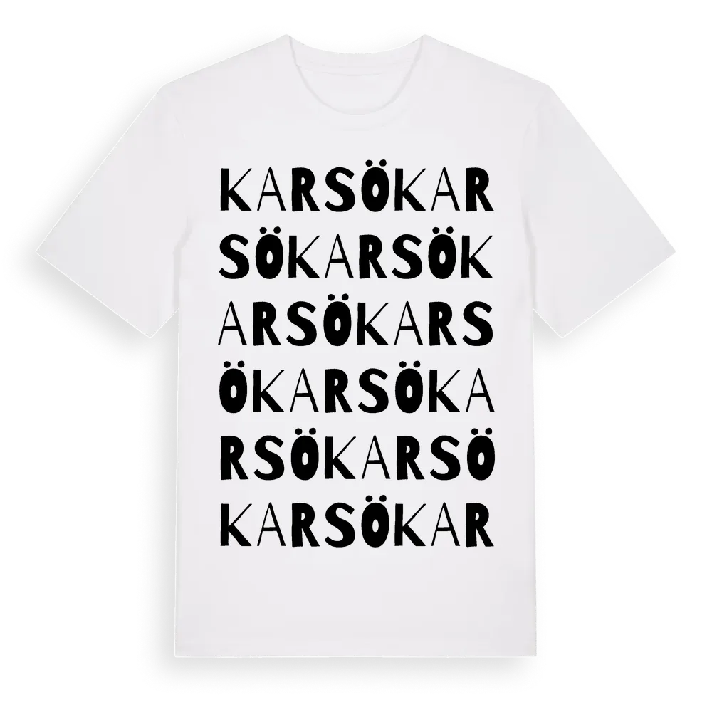 Karsö ordlek t-shirt är inspirerad av Karsö i Jönköpings län, Sverige. Tröjan är designad för dig som har en speciell koppling till platsen – oavsett om du bor här, har rötterna här eller bara älskar Karsö.