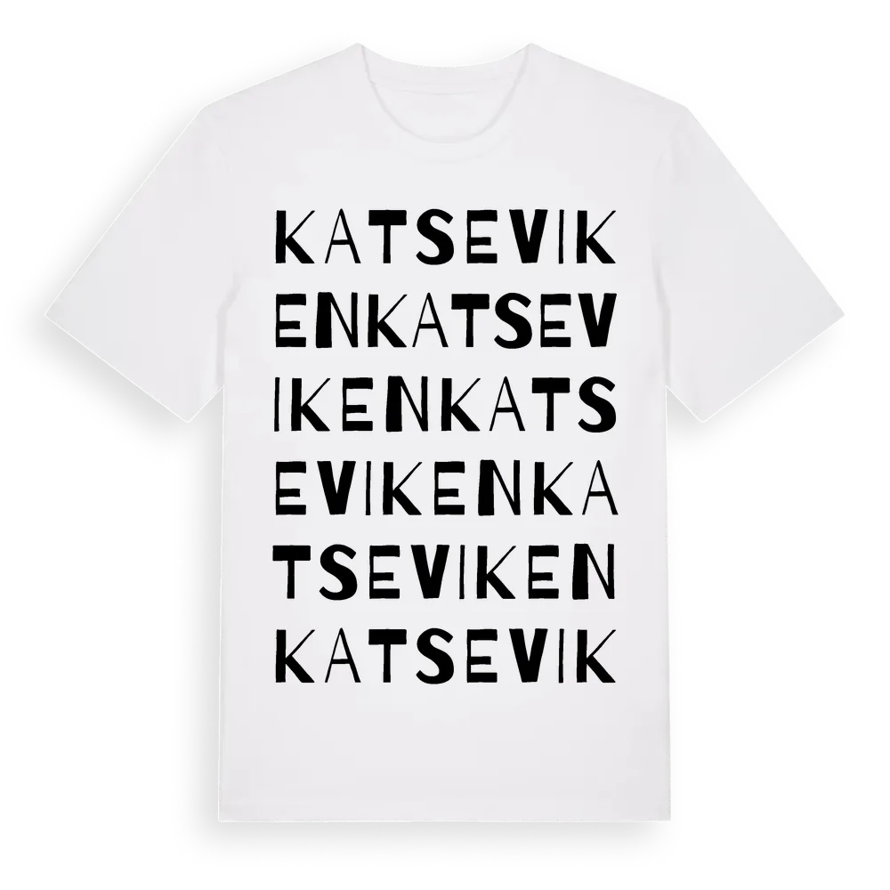 Katseviken ordlek t-shirt är inspirerad av Katseviken i Jönköpings län, Sverige. Tröjan är designad för dig som har en speciell koppling till platsen – oavsett om du bor här, har rötterna här eller bara älskar Katseviken.