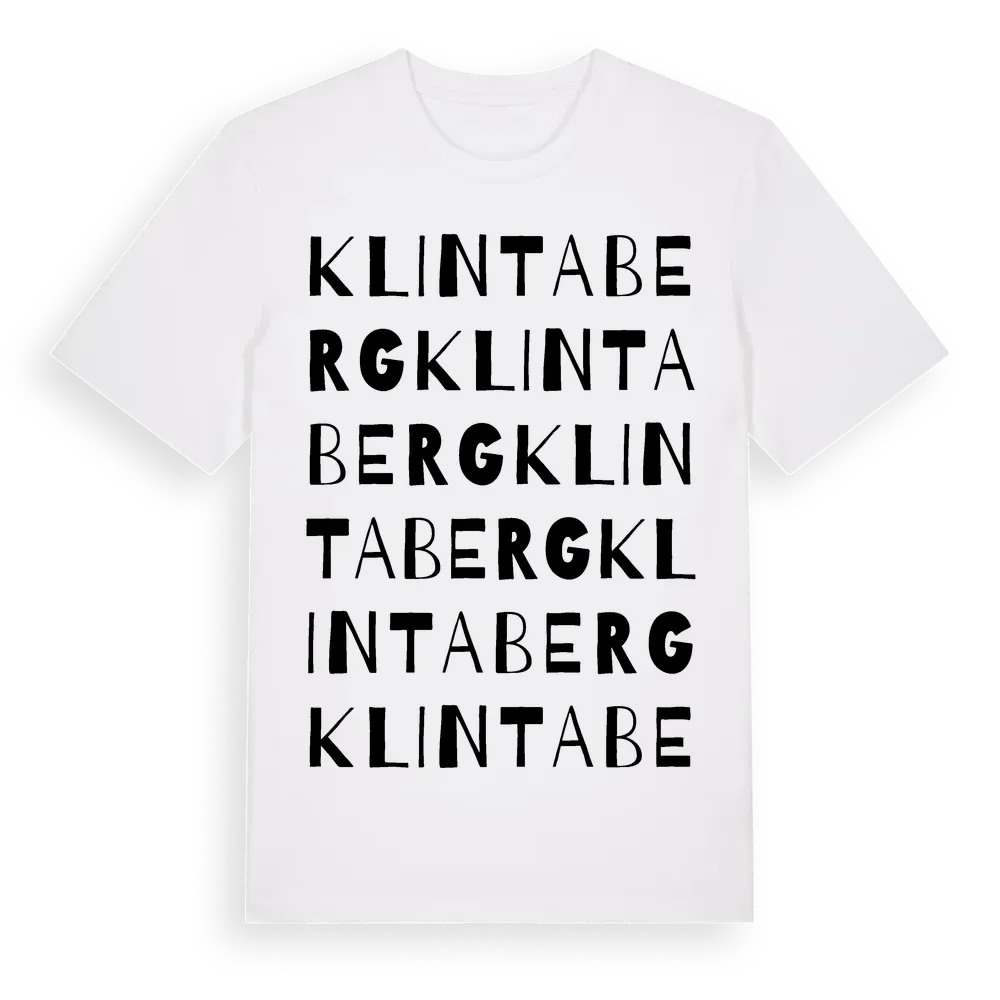 Klintaberg ordlek t-shirt är inspirerad av Klintaberg i Jönköpings län, Sverige. Tröjan är designad för dig som har en speciell koppling till platsen – oavsett om du bor här, har rötterna här eller bara älskar Klintaberg.