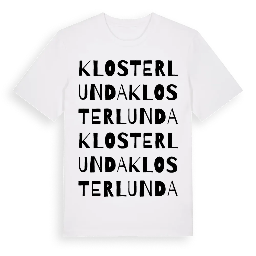 En ordlek byggd på Klosterlundas namn. Subtilt och klurig – ett motiv som bara de som verkligen känner platsen fullt ut förstår. Premium bomull, unisex – från Klosterlunda i Jönköpings län.