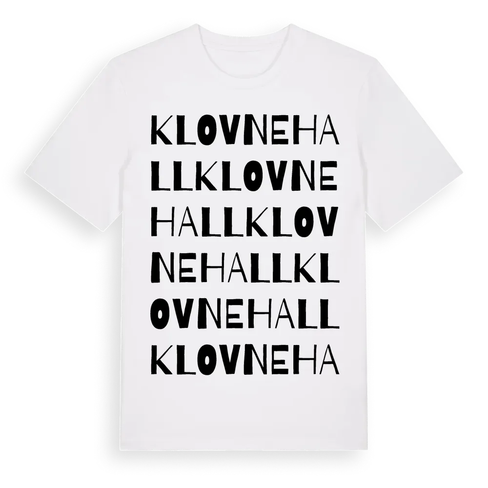 Klovnehall ordlek t-shirt är inspirerad av Klovnehall i Jönköpings län, Sverige. Tröjan är designad för dig som har en speciell koppling till platsen – oavsett om du bor här, har rötterna här eller bara älskar Klovnehall.