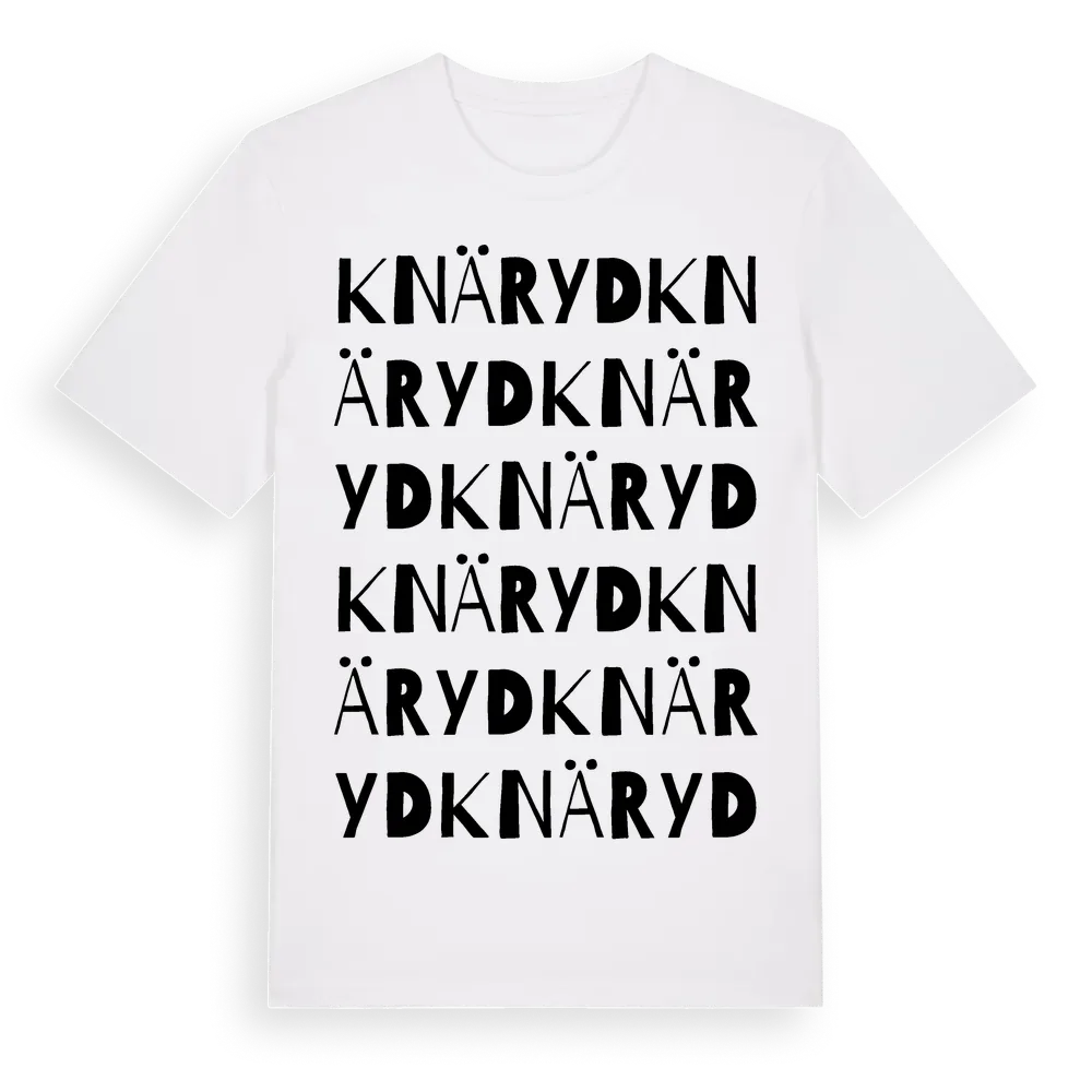Knäryd ordlek t-shirt är inspirerad av Knäryd i Jönköpings län, Sverige. Tröjan är designad för dig som har en speciell koppling till platsen – oavsett om du bor här, har rötterna här eller bara älskar Knäryd.