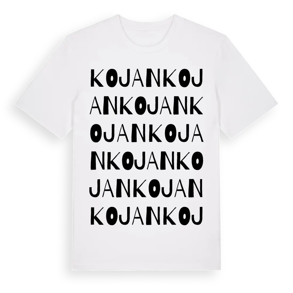 Kojan ordlek t-shirt är inspirerad av Kojan i Jönköpings län, Sverige. Tröjan är designad för dig som har en speciell koppling till platsen – oavsett om du bor här, har rötterna här eller bara älskar Kojan.