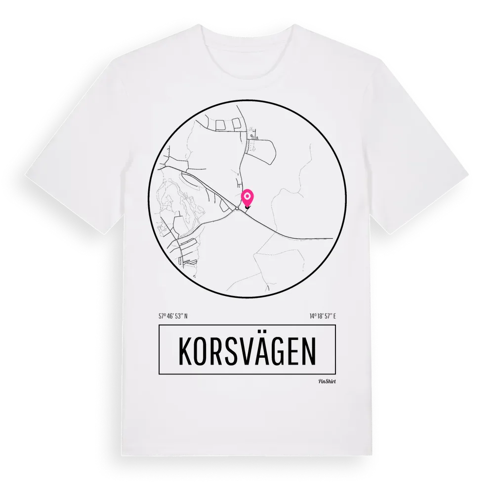 Korsvägen t-shirt är inspirerad av stadsdelen Korsvägen i Jönköpings län, Sverige. Tröjan är designad för dig som har en speciell koppling till platsen – oavsett om du bor här, har rötterna här eller bara älskar Korsvägen.