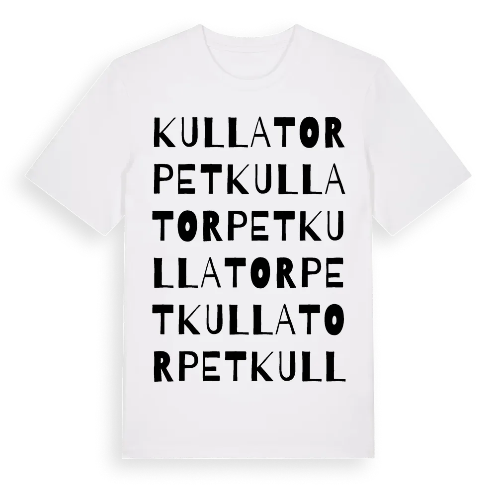 Kullatorpet ordlek t-shirt är inspirerad av Kullatorpet i Jönköpings län, Sverige. Tröjan är designad för dig som har en speciell koppling till platsen – oavsett om du bor här, har rötterna här eller bara älskar Kullatorpet.