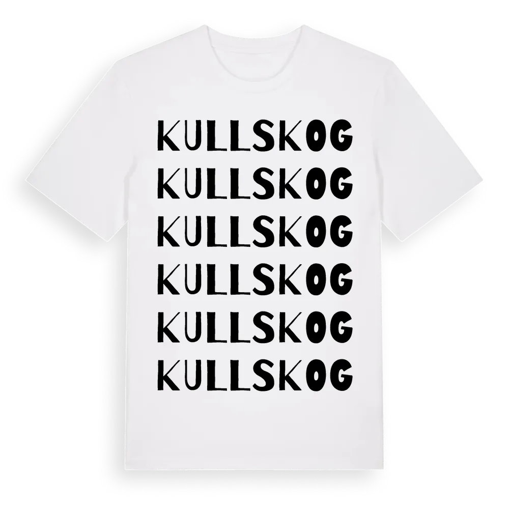 Kullskog ordlek t-shirt är inspirerad av byn Kullskog i Jönköpings län, Sverige. Tröjan är designad för dig som har en speciell koppling till platsen – oavsett om du bor här, har rötterna här eller bara älskar Kullskog.