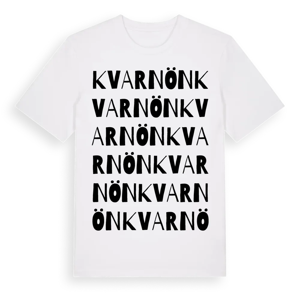 Kvarnön ordlek t-shirt är inspirerad av Kvarnön i Jönköpings län, Sverige. Tröjan är designad för dig som har en speciell koppling till platsen – oavsett om du bor här, har rötterna här eller bara älskar Kvarnön.
