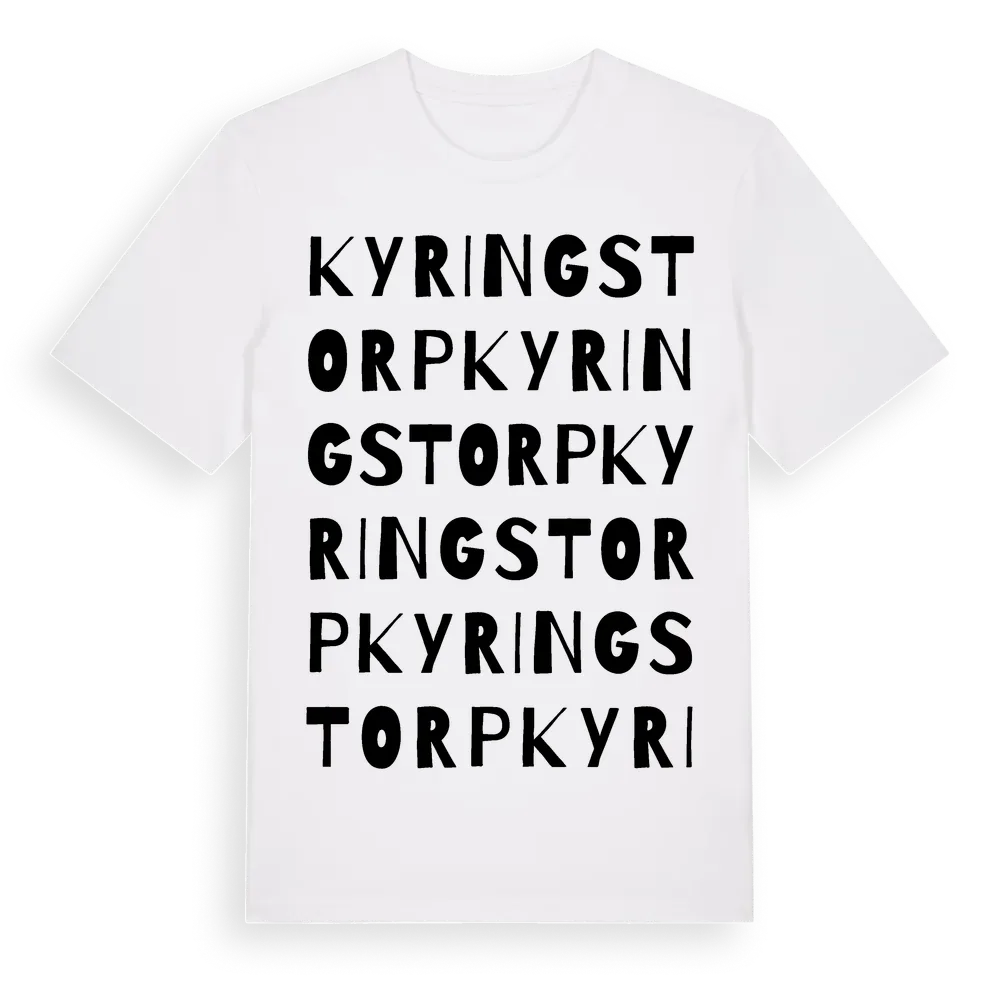 Kyringstorp ordlek t-shirt är inspirerad av byn Kyringstorp i Jönköpings län, Sverige. Tröjan är designad för dig som har en speciell koppling till platsen – oavsett om du bor här, har rötterna här eller bara älskar Kyringstorp.