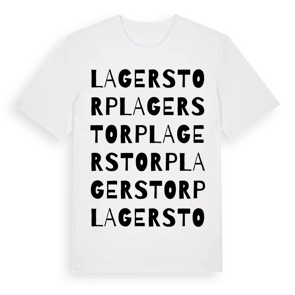 Lagerstorp ordlek t-shirt är inspirerad av byn Lagerstorp i Jönköpings län, Sverige. Tröjan är designad för dig som har en speciell koppling till platsen – oavsett om du bor här, har rötterna här eller bara älskar Lagerstorp.