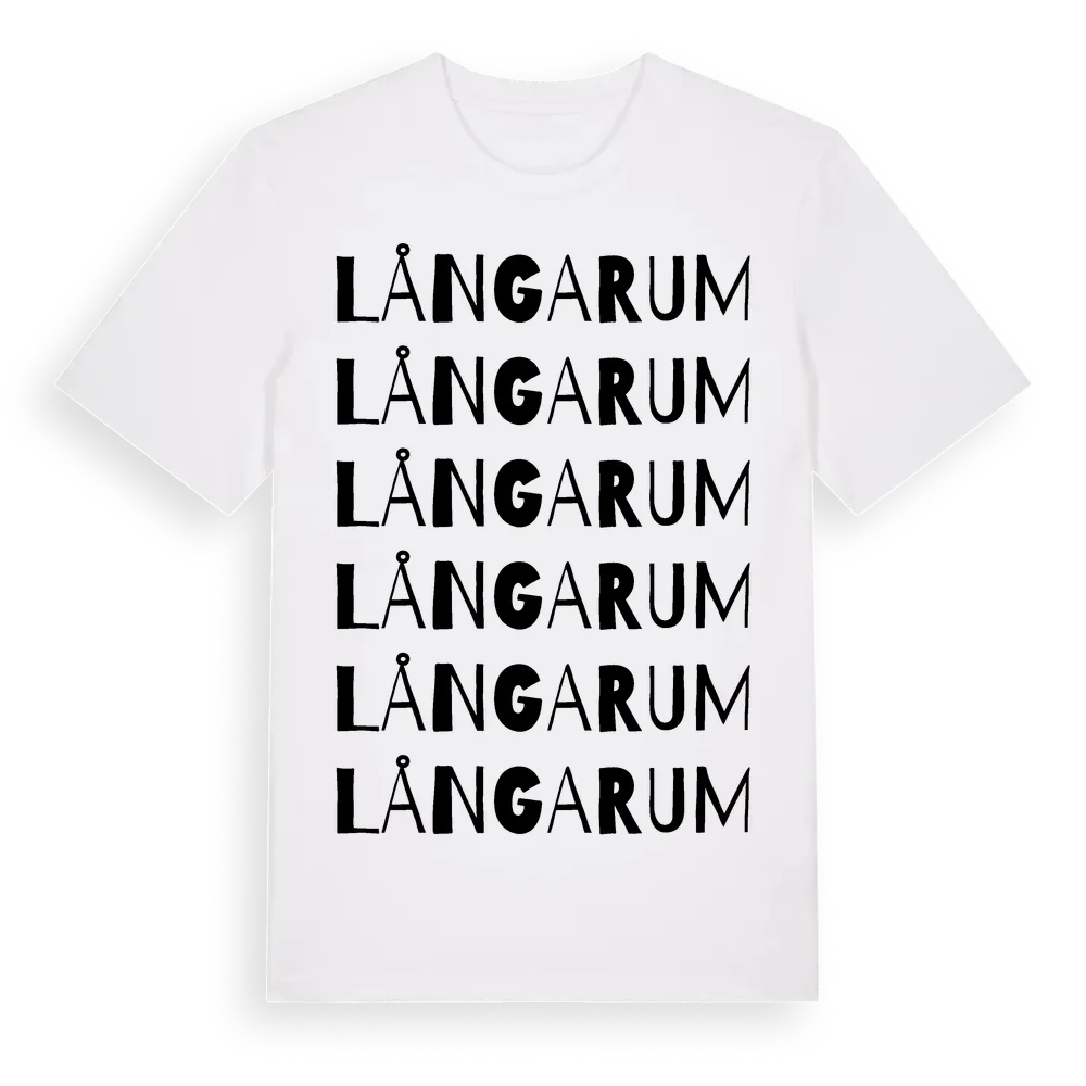 Långarum ordlek t-shirt är inspirerad av Långarum i Jönköpings län, Sverige. Tröjan är designad för dig som har en speciell koppling till platsen – oavsett om du bor här, har rötterna här eller bara älskar Långarum.