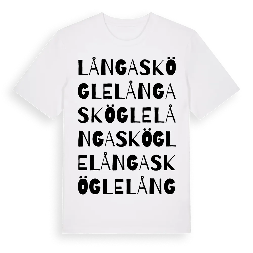 En ordlek byggd på Långaskögles namn. Subtilt och klurig – ett motiv som bara de som verkligen känner platsen fullt ut förstår. Premium bomull, unisex – från byn Långaskögle i Jönköpings län.