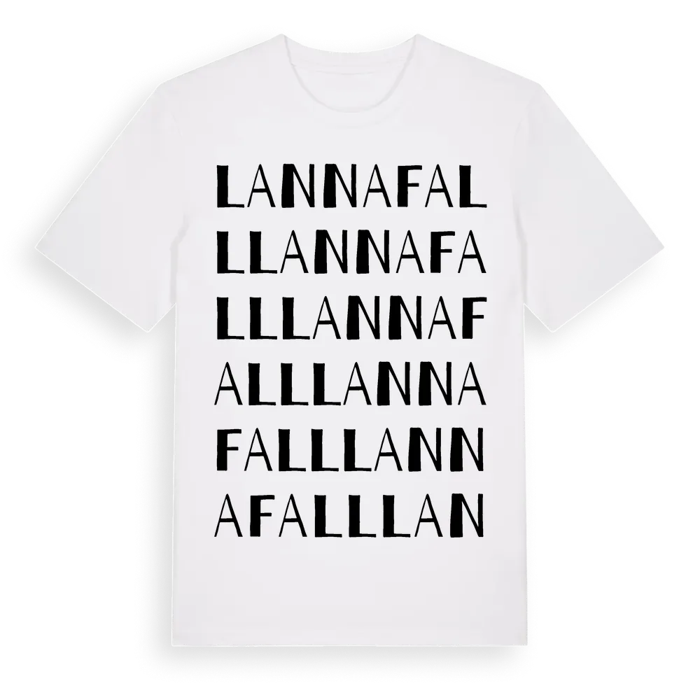 Lannafall ordlek t-shirt är inspirerad av byn Lannafall i Jönköpings län, Sverige. Tröjan är designad för dig som har en speciell koppling till platsen – oavsett om du bor här, har rötterna här eller bara älskar Lannafall.