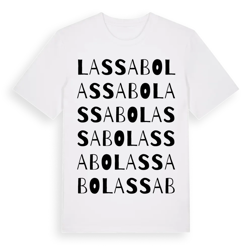 En ordlek byggd på Lassabos namn. Subtilt och klurig – ett motiv som bara de som verkligen känner platsen fullt ut förstår. Premium bomull, unisex – från Lassabo i Jönköpings län.