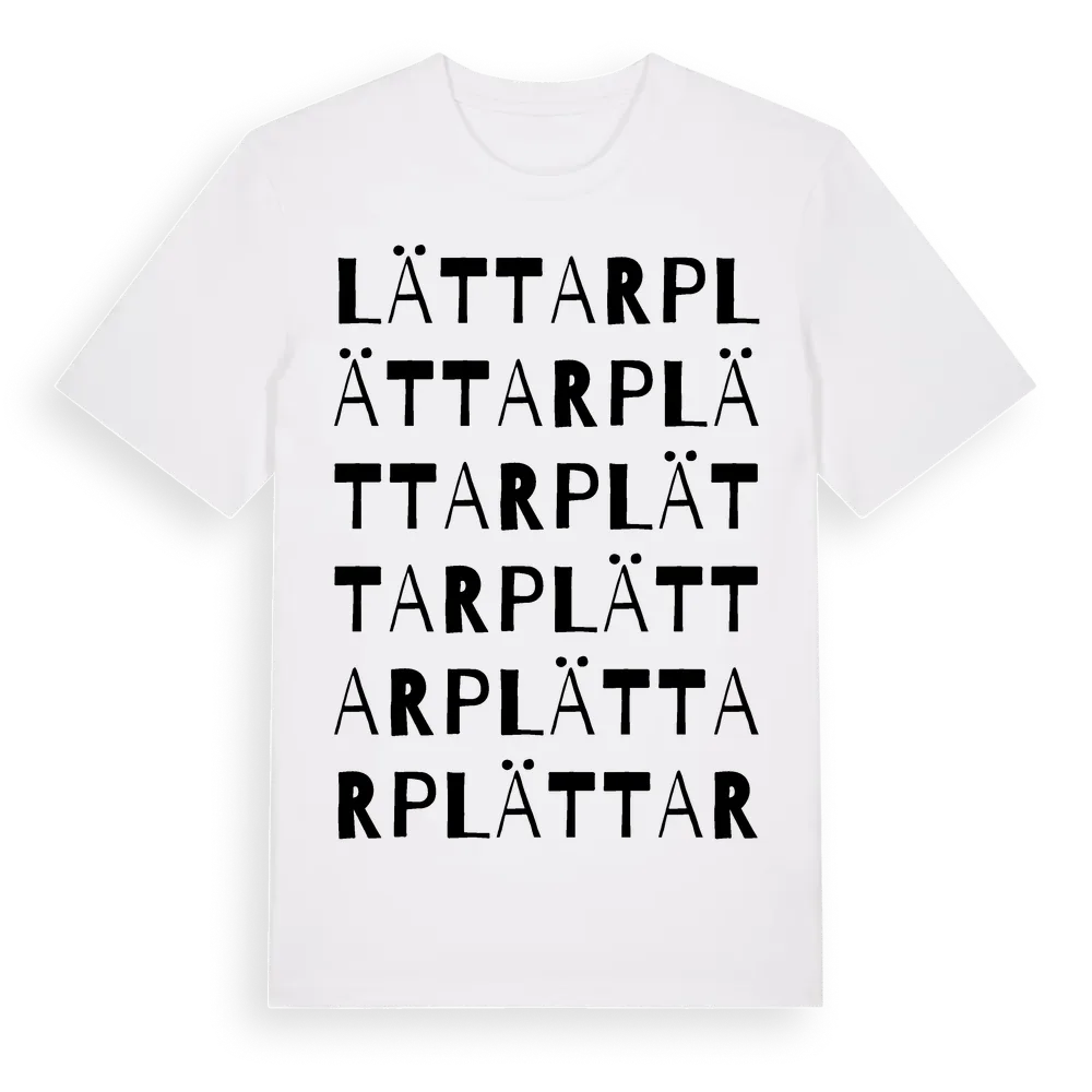 Lättarp ordlek t-shirt är inspirerad av Lättarp i Jönköpings län, Sverige. Tröjan är designad för dig som har en speciell koppling till platsen – oavsett om du bor här, har rötterna här eller bara älskar Lättarp.