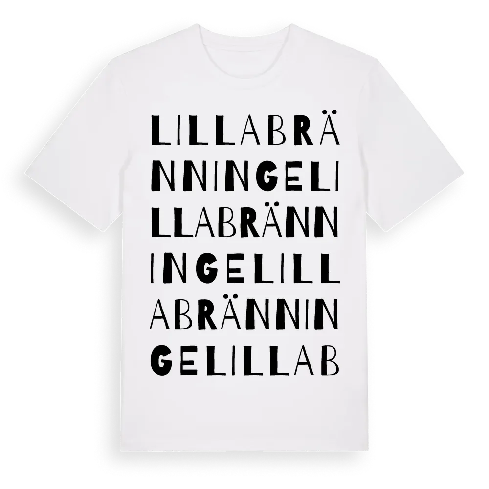 En ordlek byggd på Lilla Bränninges namn. Subtilt och klurig – ett motiv som bara de som verkligen känner platsen fullt ut förstår. Premium bomull, unisex – från stadsdelen Lilla Bränninge i Jönköpings län.